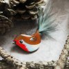 Dřevěné tělo cca 3,5 cm od zobáčku po zadeček + 2,5 cm peří (cca 6 cm celá délka i s peřím).
